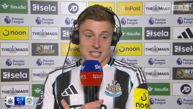 英超第12轮纽卡斯尔联2-1击败了曼城。比赛中上演梅开二度的哈维-巴恩斯接受了天空体育的采访。